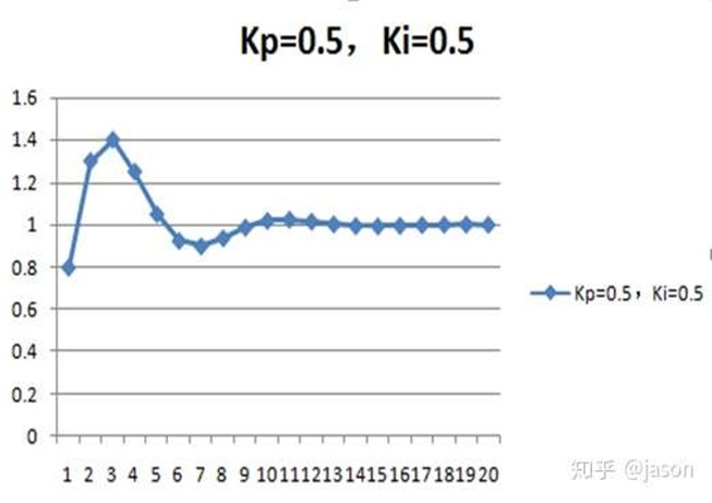 我们发现对比 上面那张Kp= 0.5,Ki=0.5 的图,这张图的震荡减轻了,这正是微分发生了作用,