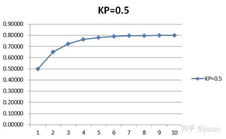 第一次,误差是 1-0.2=0.8m,那么加入水量是 Kp*0.8= 0.4mm.最终水位时是0.4+0.2-0.1=0.5
